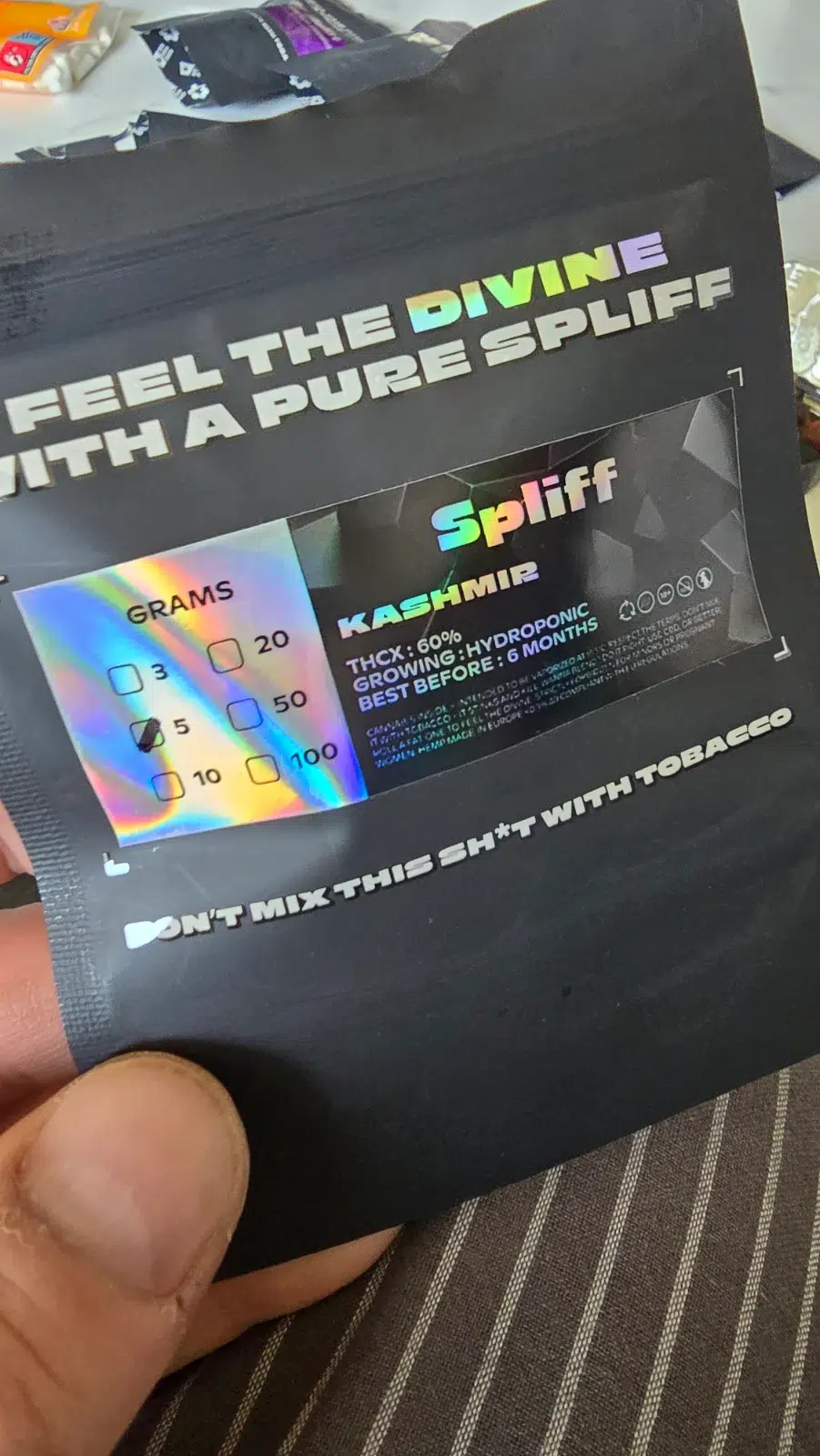 Kashmir THCX 60% está muy fuerte y bueno es el mejor que tenemos y tenemos mucha cantidad.un abrazo.