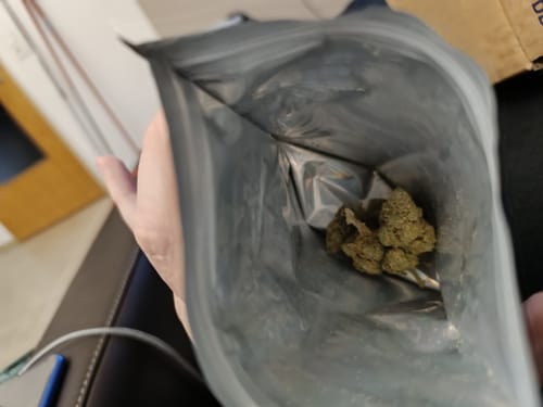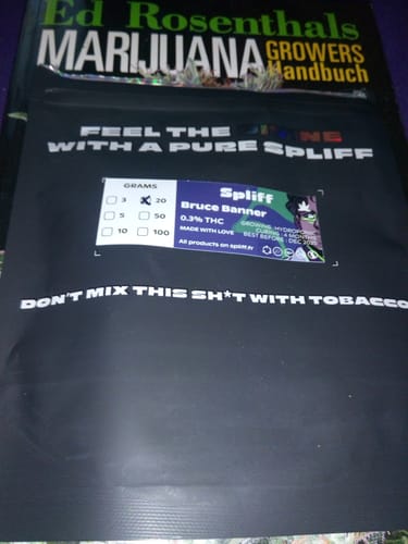 Mooie grote bloemen ontvangen. Speciale smaak, geur vult de hele kamer. Sterk effect. Moet de joint in stukjes roken. Stevig effect, 4 van 10.