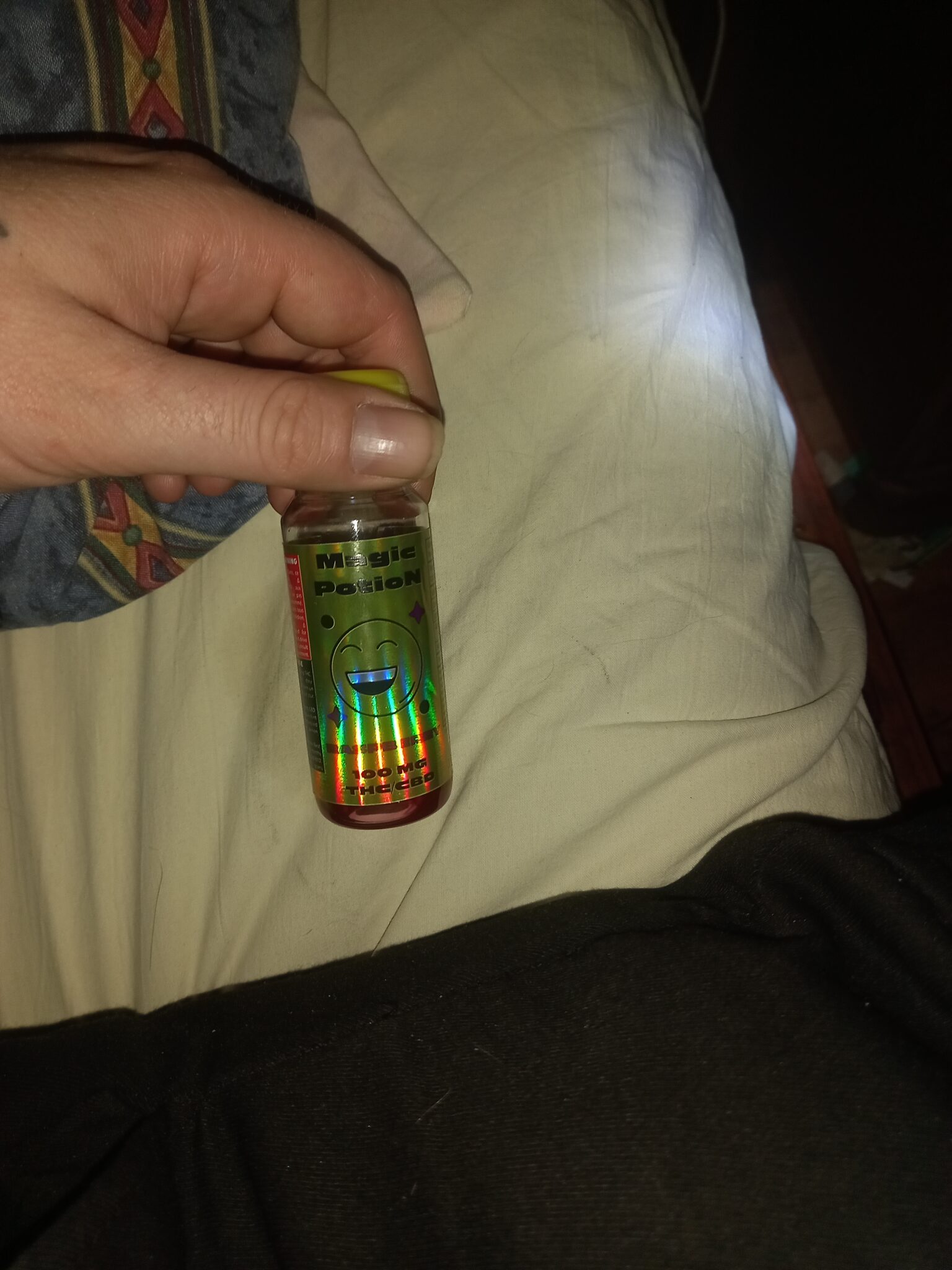 Ik nam een derde van de fles en heb geen klachten. Goede high, langdurig effect.